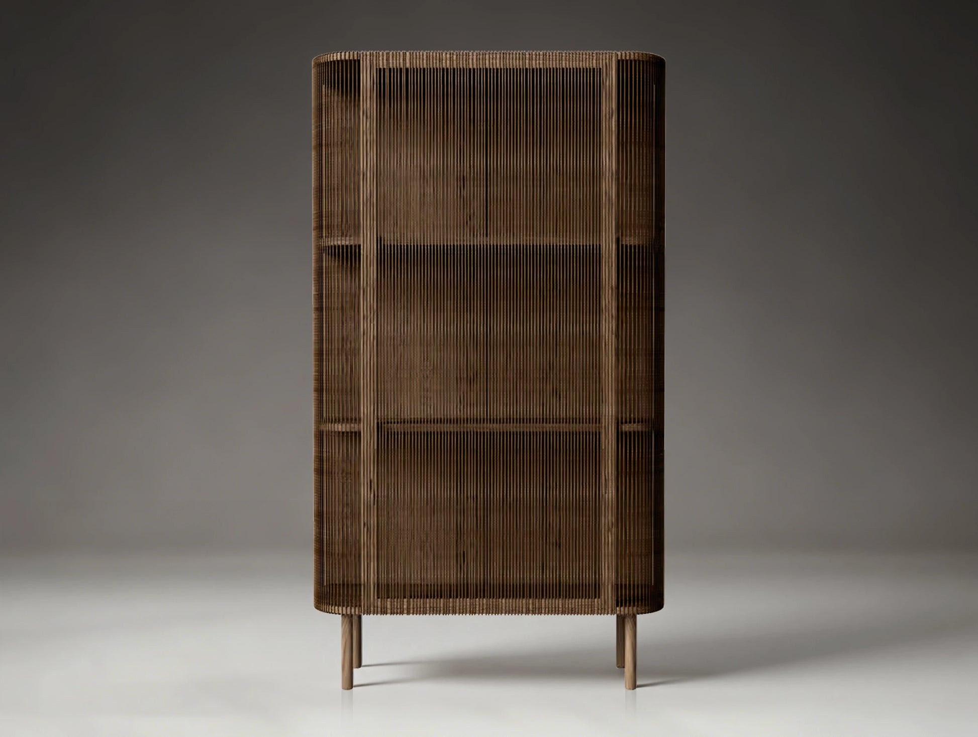 This interplay of structure and softness gives the cabinet a distinctive character—grounded yet visually open. Designed for both display and storage, it adds warmth and craftsmanship to dining areas, living spaces, or curated interiors.