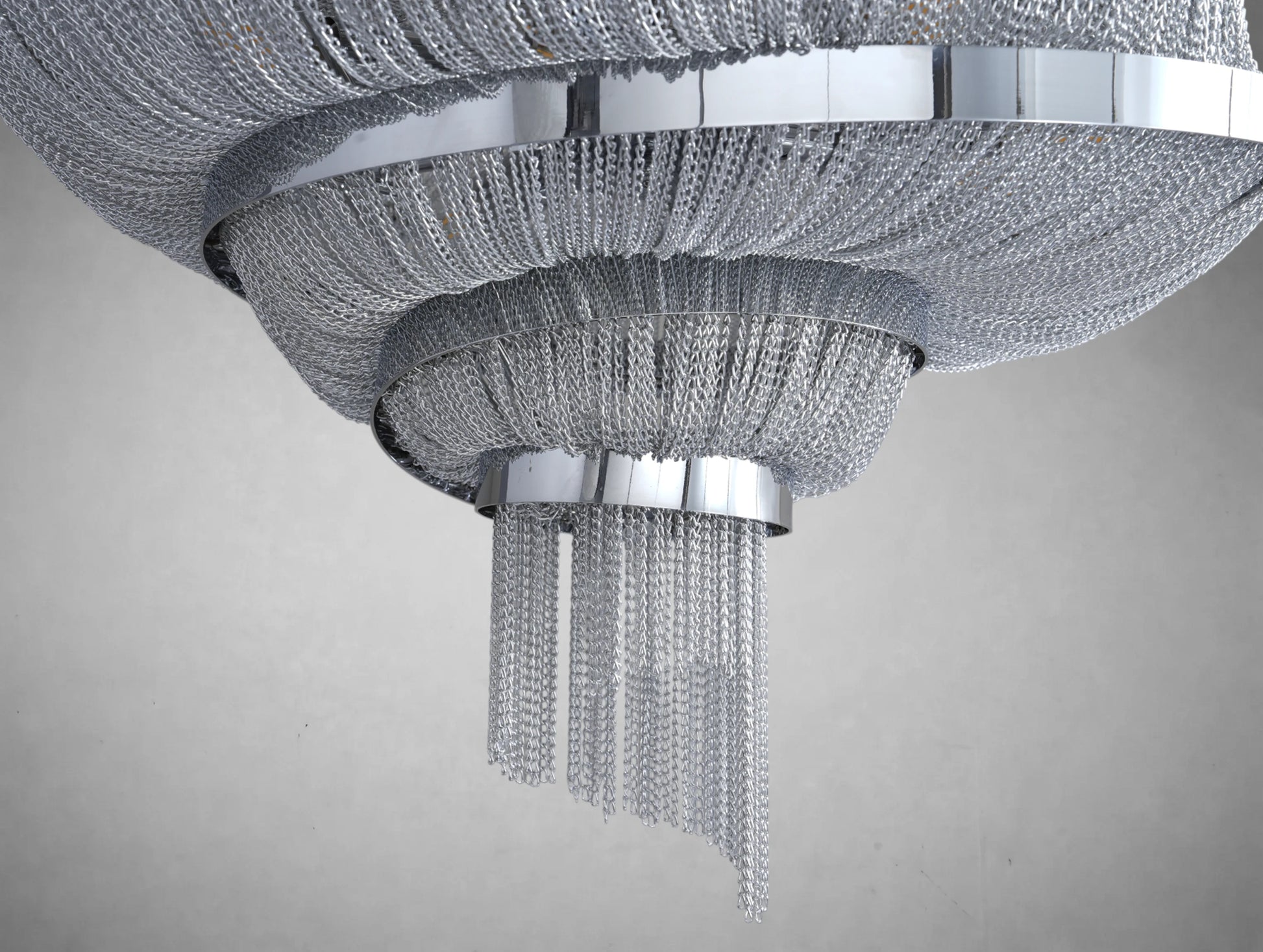 Electroplated glass elements introduce rich color variation and depth, allowing light to shimmer with subtle complexity. Designed to elevate evening settings, this chandelier brings drama, warmth, and timeless beauty to the space.